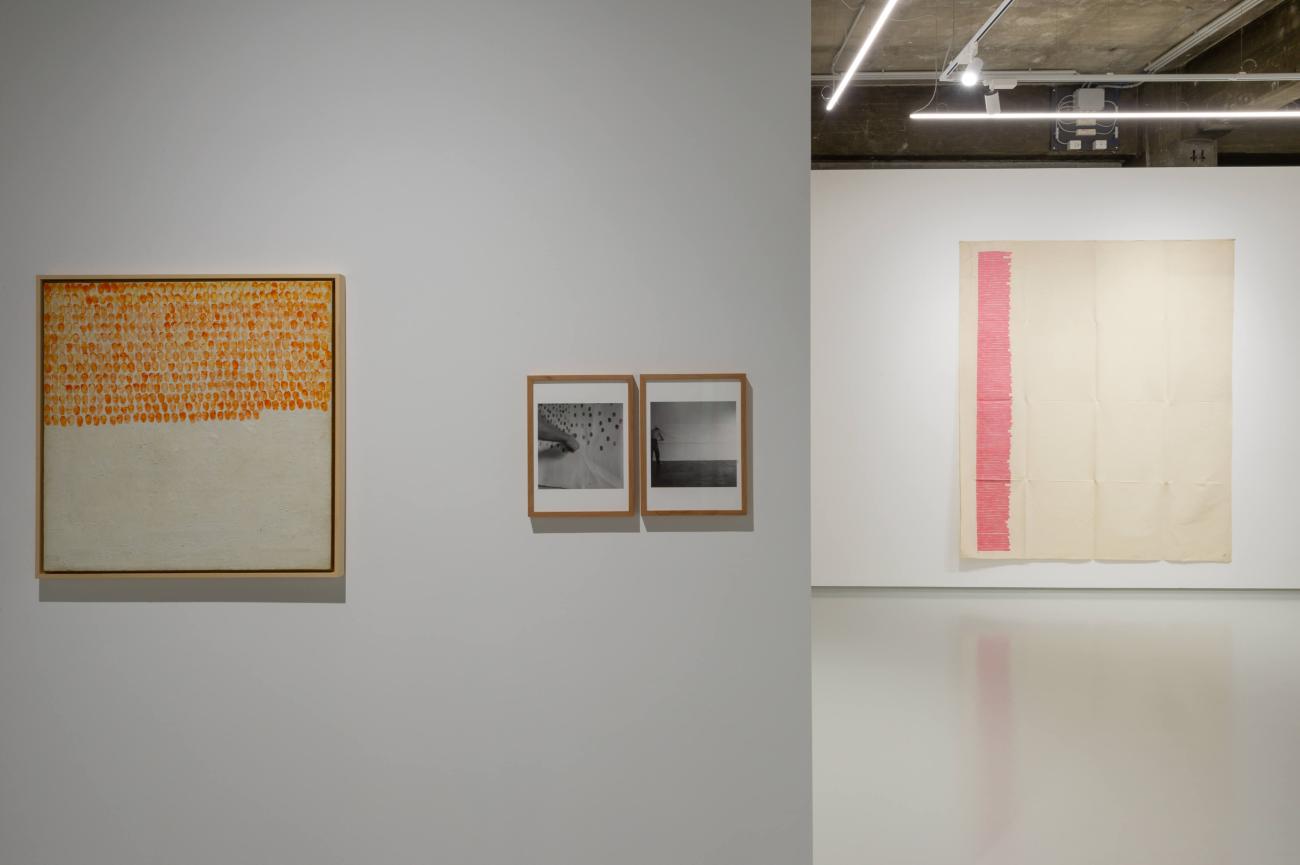 Summer 1969. A moment so intimate and magical, like the Turin of those years, immortalized in the photographs of Paolo Mussat Sartor. Giorgio Griffa stepping through the halls of the Sperone Gallery, still closed to the public, as he soaks up the energy of the fruits of his efforts over the 1960s to forge “his own” inimitable style of painting “impersonal marks that belong to any hand.”