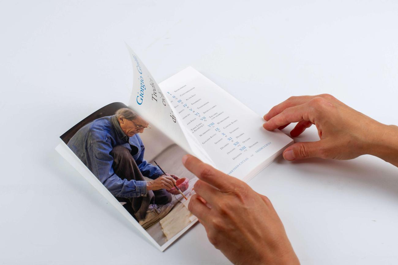 Giorgio Griffa guides us with clear, simple words through his painting, providing insights into the motivations and thought behind the thirteen cycles cited in the title of this book. Cycles that, as Griffa himself explains, are not strict classifications nor progressive stages in an evolutionary process, but rather parallel paths that can sometimes intersect, overlap, or go their separate ways.